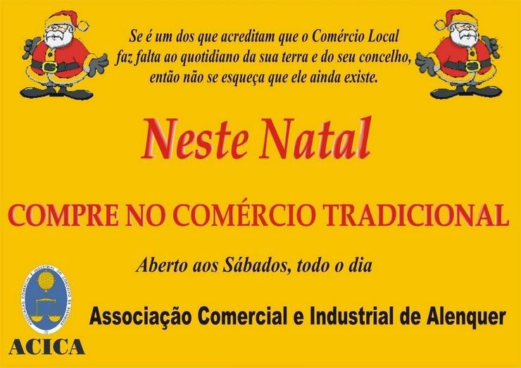 · Transporte urbano (Autocarro da Pacheca) gratuito, no seu trajecto habitual, em Alenquer, nos Sábados à tarde – dias 27 de Novembro, 4, 11 e 18 de Dezembro. Se possível, haverá um Pai Natal a animar estas viagens.